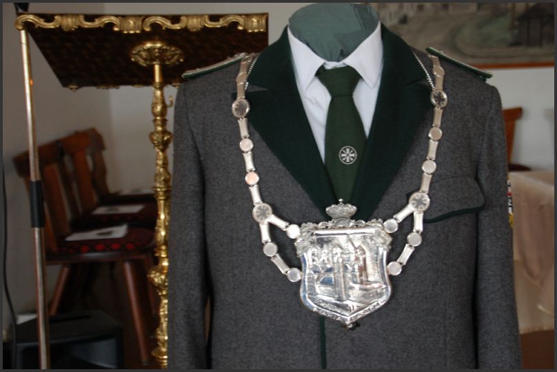 Während dieser Messe wurde die neu angeschaffte Bezirkskönigskette, die ein Bild und das Wappen der Abteikirche zeigt, eingesegnet.