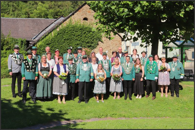 Bei strahlendem Sonnenschein startete das 96.Bezirksbundesfest mit dem Königsschiessen am Samstagnachmittag. Nachdem dieser nervenaufreibende Part erledigt war, trafen sich die Königspaare zu einem gemeinsamen Foto, bevor die Messe, zelebriert von Pastor Michael Wilhelm und unserem Bezirkspräses Dr. Volker Malburg, unter freiem Himmel stattfand. Musikalisch begleitet wurde diese vom Spielmannszug Illerich. Nach der Messe gab es einen Sektempfang für die Königspaare und um kurz nach acht zogen diese, angeführt von Mario Deisen ins Festzelt ein. Sie wurden vorgestellt und bekamen ein liebevoll gestaltetes Präsent und das Gruppenfoto als Erinnerung an dieses Fest. Im Anschluß folgten einige Reden,unter anderem von der Schirmherrin Anke Beilstein Landrätin des Landkreises Cochem-Zell, bevor es gegen 21.00 Uhr endlich zum Höhepunkt des Tages kam. Es wurde der neue Bezirkskönig proklamiert. Unser Bundesmeister Norbert Steffens gestaltete die Proklamation sehr spannend, so dass die Anwesenden miträtseln konnten welcher St.Sebastianer wohl mit 30 Ringen die Königswürde errungen hat - es ist Pierre Prüm aus Mayen, der sich sichtlich über den Erfolg freute. Im Anschluss wurde noch kräftig gefeiert.