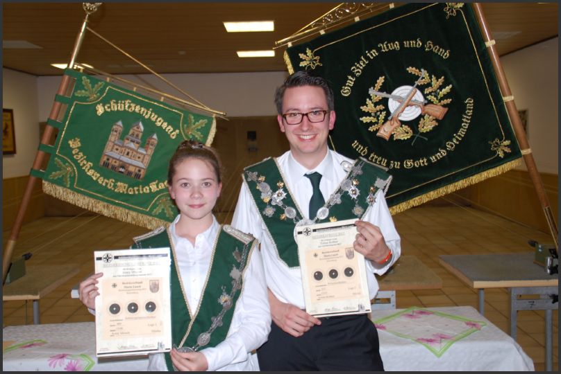 Neuer Bez.-Schülerprinzessin wurde Jenny Miesen aus Dünfus mit 30 Ringen, gefolgt von Domenik Nöthen aus Mayen mit 28 Ringen, die sich beide fürs Diözesanprinzenschießen in Rübenach qualifizierten.