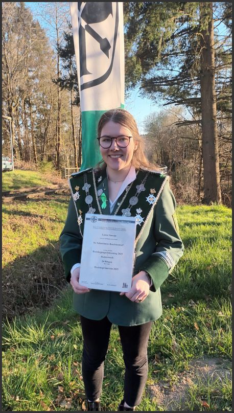 Laura Simons aus Brachtendorf konnte beim Bezirksjungschützentag 2025 in Kaisersesch Ihre Konkurenz hinter sich lassen und den Titel Bezirksprinzessin mit 26 Ringen erringen. Sie wird den Bezirk gemeinsam mit der zweitplatzierten Sophie-Christin Wingender ( 24 Ringe ) aus Mayen am 25.05.2025 auf dem Diözesanjungschützentag in Kruft vertreten.